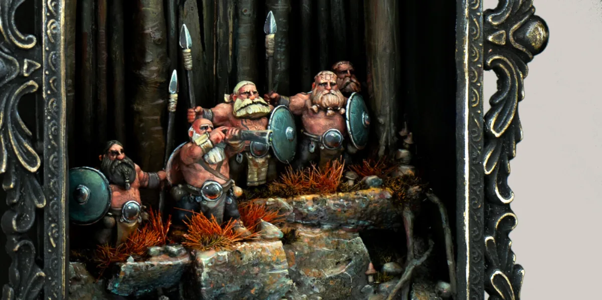 Learn tips and tricks about composition, create realistic forest effects and learn how to include nature's influance to set up a great scene for your group of Wood Dwarves.