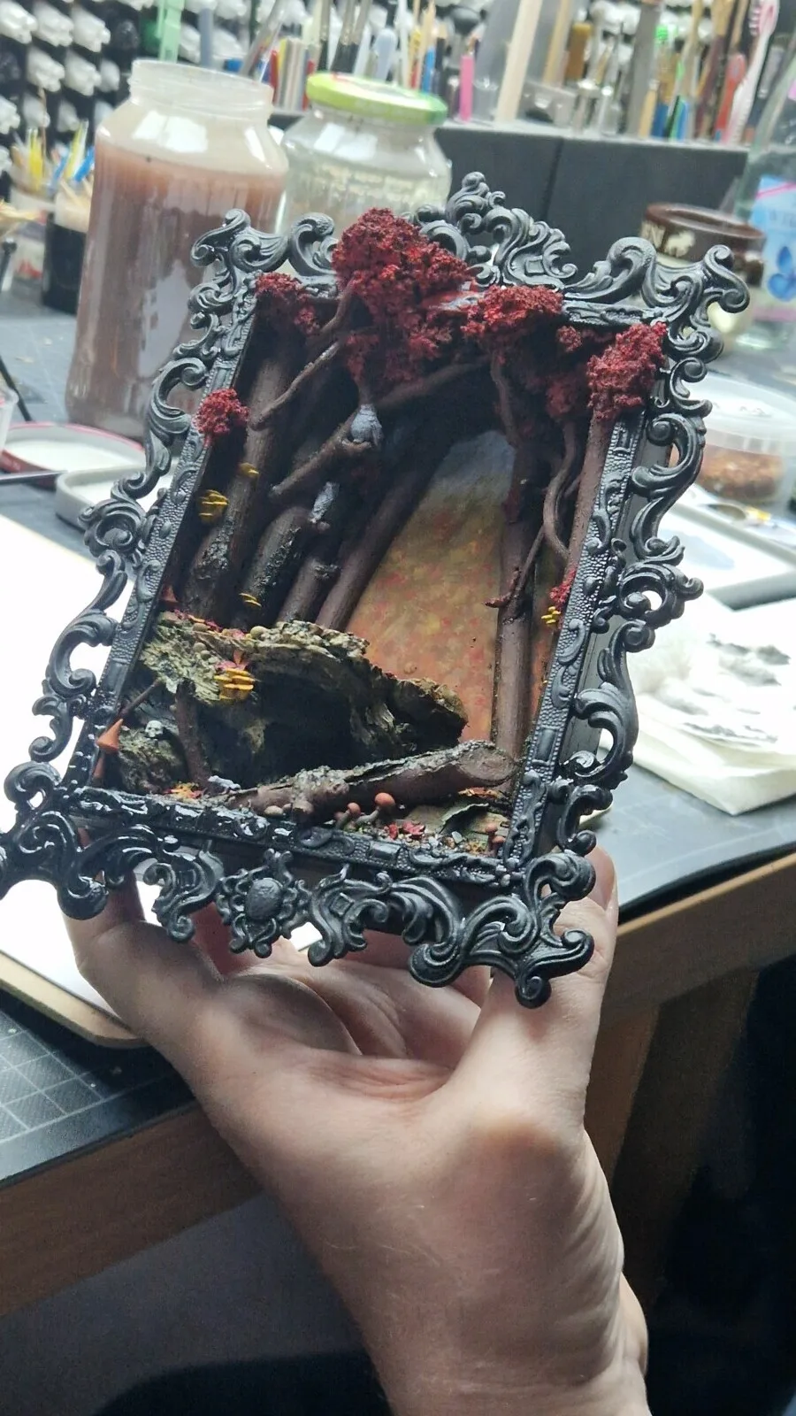 Tons of fun was had in last week's second round teaching a group masterclass about the creation of a framed dioramas. Thanks to my lovely five students from Germany, Netherlands and Belgium. It was my pleasure guiding you and awesome to see your ideas grow. Thank you for your will to learn with me and your support! Thanks to @pkpro_onlineshop @redgrassgames @thearmypainter for their amazing support for my workshops. Miniatures used are limited Wood Dwarves by @spiramirabilis_miniatures.